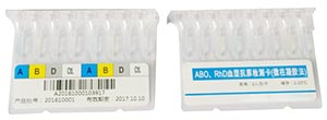 血型檢測卡用于快速檢測新鮮血液的ABO血型。在每一個(gè)檢測孔內(nèi)滴加一至二滴待測紅細(xì)胞懸液(濃度不低于2%),混合作用30秒鐘后,上下傾斜試劑卡或用牙簽攪勻,不要讓液體流出孔外,1分鐘內(nèi)觀察結(jié)果。有砂粒狀凝結(jié)物的為陽性,沒有凝結(jié)物的為陰性。
